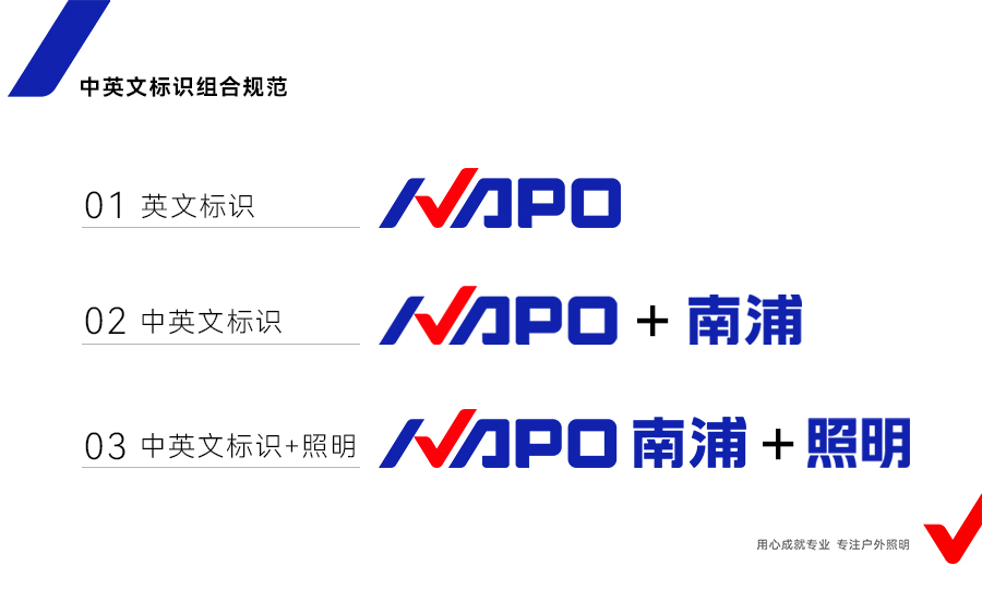 全新的品牌商标以更具爆发力的视觉,诠释品牌Slogan「用心成就专业 专注户外照明」,呈现崭新的南浦照明。
